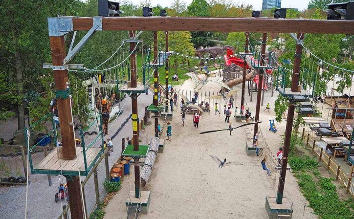 In Dinoland vermaak je je de hele dag. Overwin het hoogteparcours, luid de bel bovenin de klimwand, speel samen een potje minigolf en versla elkaar met lasergamen. In het speciale paleolab leer je als een echte paleontoloog goudzoeken, fossielen zeven en kun je je eigen dino kleien. Zin om je even helemaal uit te leven? Dat kan in de grote dino speeltuinen binnen en buiten!
